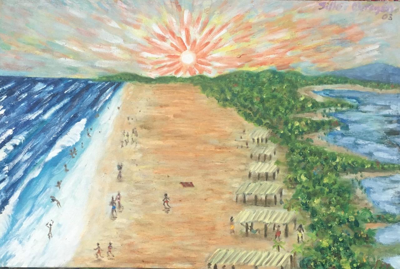 Sunset landscape on the beach between the arbors and small restaurants of Tetitlan in the Tierra Caliente region and Michigan in the state of Guerrero, on the mainland.