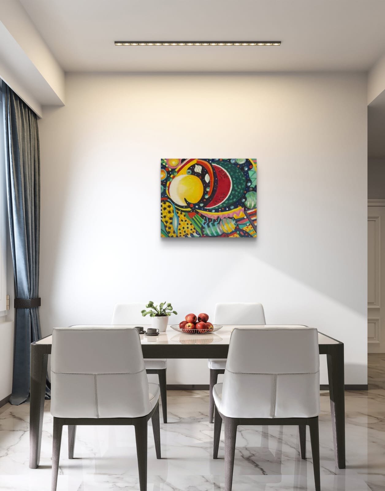 Esta obra abstracta y colorida explora la energía vital y la conexión entre la naturaleza y los elementos esenciales que nos nutren. Con una composición vibrante y formas orgánicas, el artista invita al espectador a reflexionar sobre la abundancia y el equilibrio en la vida. Ideal para coleccionistas de arte contemporáneo y amantes de los cuadros modernos llenos de color y movimiento.