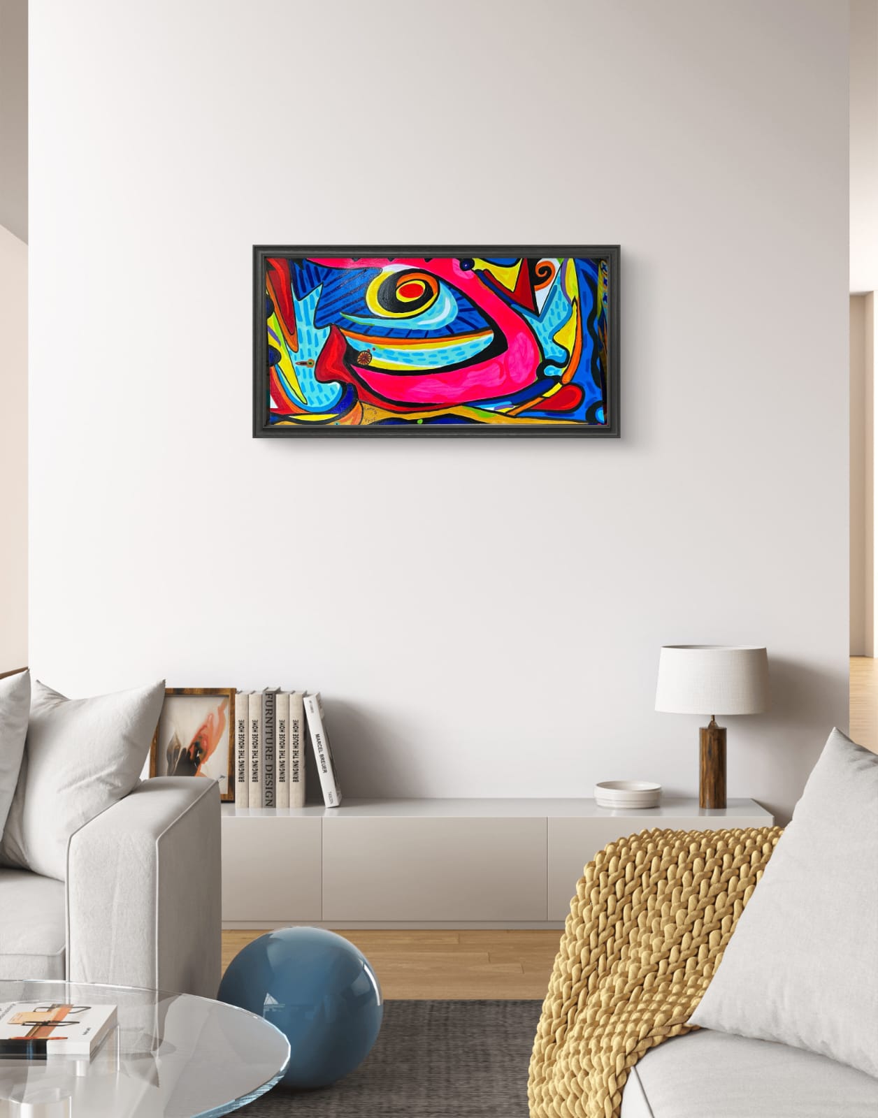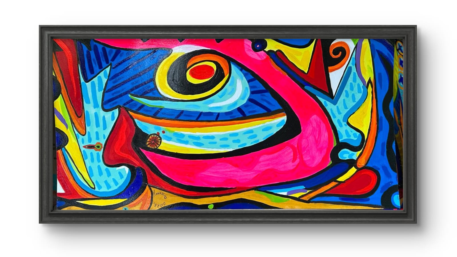 Composición vibrante en la que los colores intensos generan un ritmo visual lleno de movimiento.