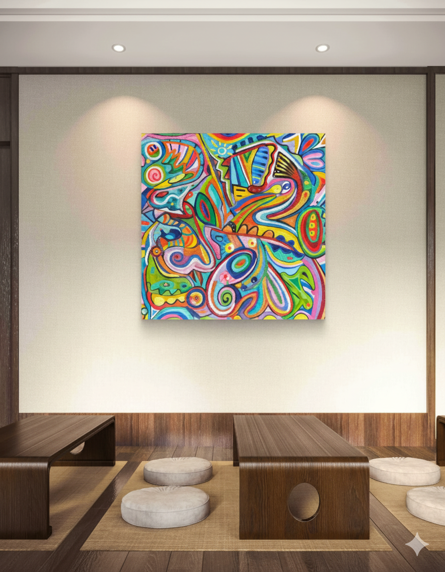 Un lienzo dinámico que captura la energía con una paleta de colores audaz y una textura palpable. Esta obra inyecta vitalidad y modernidad instantánea, ideal para convertirse en el punto focal principal de cualquier habitación.